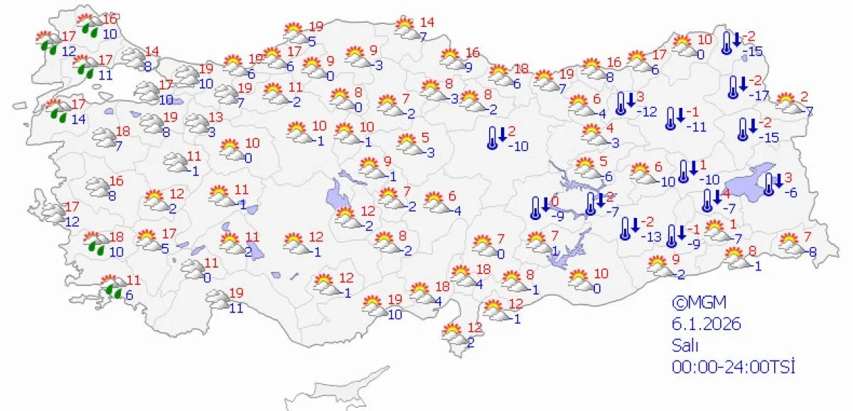 Haftanın pazartesi ve salı günlerinde Türkiye’nin büyük bölümünde mevsim normallerine yakın, yer yer bahar havasını andıran bir tablo bekleniyor. Kıyı kesimlerde sıcaklıklar 15 ila 20 derece arasında seyredecek. Marmara, Ege ve Akdeniz bölgelerinde parçalı ve az bulutlu bir gökyüzü hakim olurken, zaman zaman güneş yüzünü gösterecek.